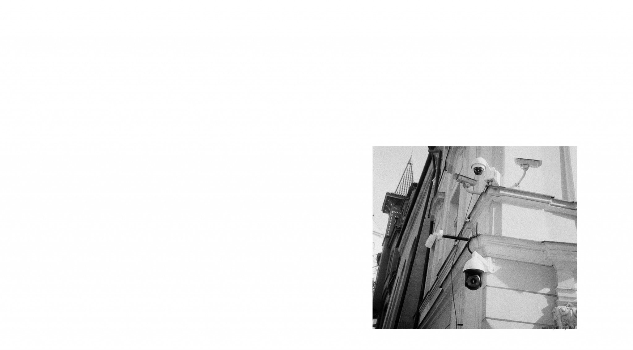 Technology has already taken control of surveillance. Video cameras are increasingly being used by governments to strengthen surveillance in the public space and manipulating the privacy of humans. To track human behaviour. These ideas of increasing surveillance have been increased due to fear of terrorism and crimes, when at the same time civil rights movements are warning public about the danger that follows. All this happens within the space of architecture. The spaces allow limitations to surveillance, blind spots, and spaces of total visibility. I will not go further to state the problems that CCTV surveillance causes, but if one is interested, it is possible to look further into it by reading my bachelor thesis about this topic.