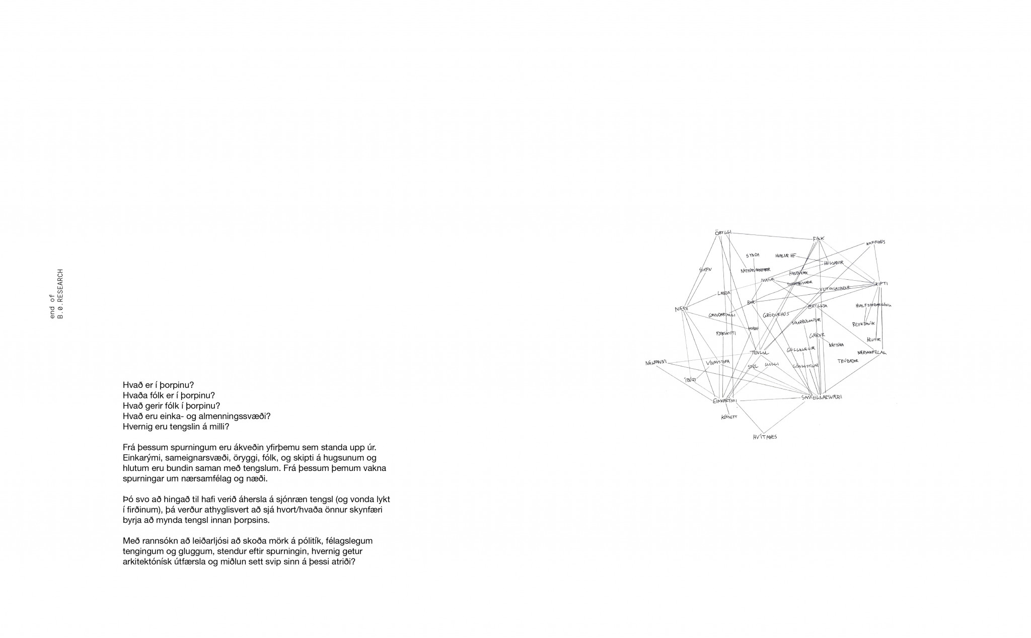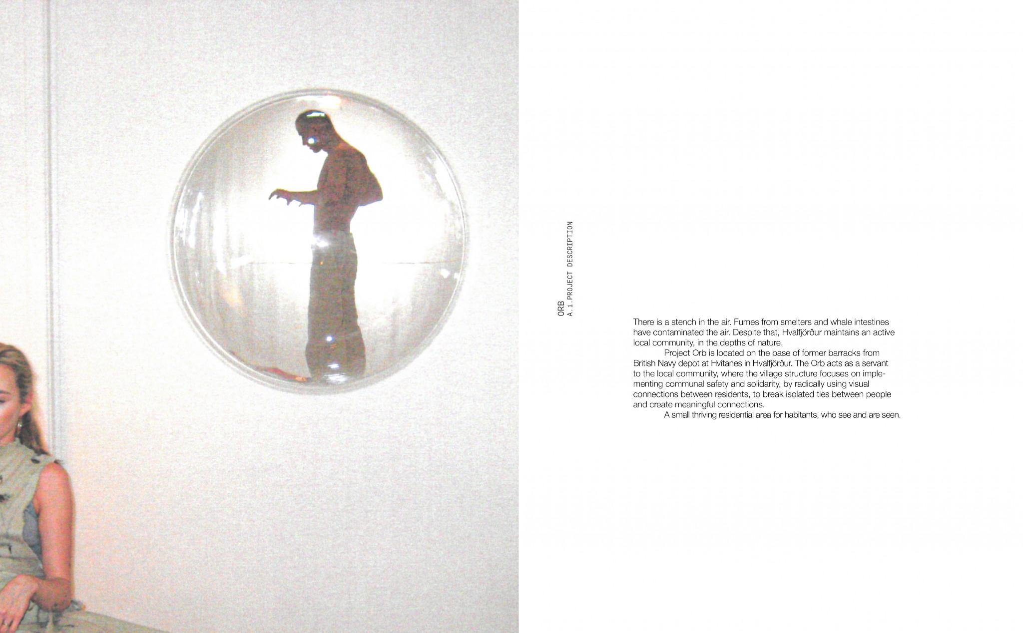 Project Orb is located on the base of former barracks from British Navy depot at Hvítanes in Hvalfjörður. The Orb acts as a servant to the local community, where the village structure focuses on imple-menting communal safety and solidarity, by radically using visual connections between residents, to break isolated ties between people and create meaningful connections.