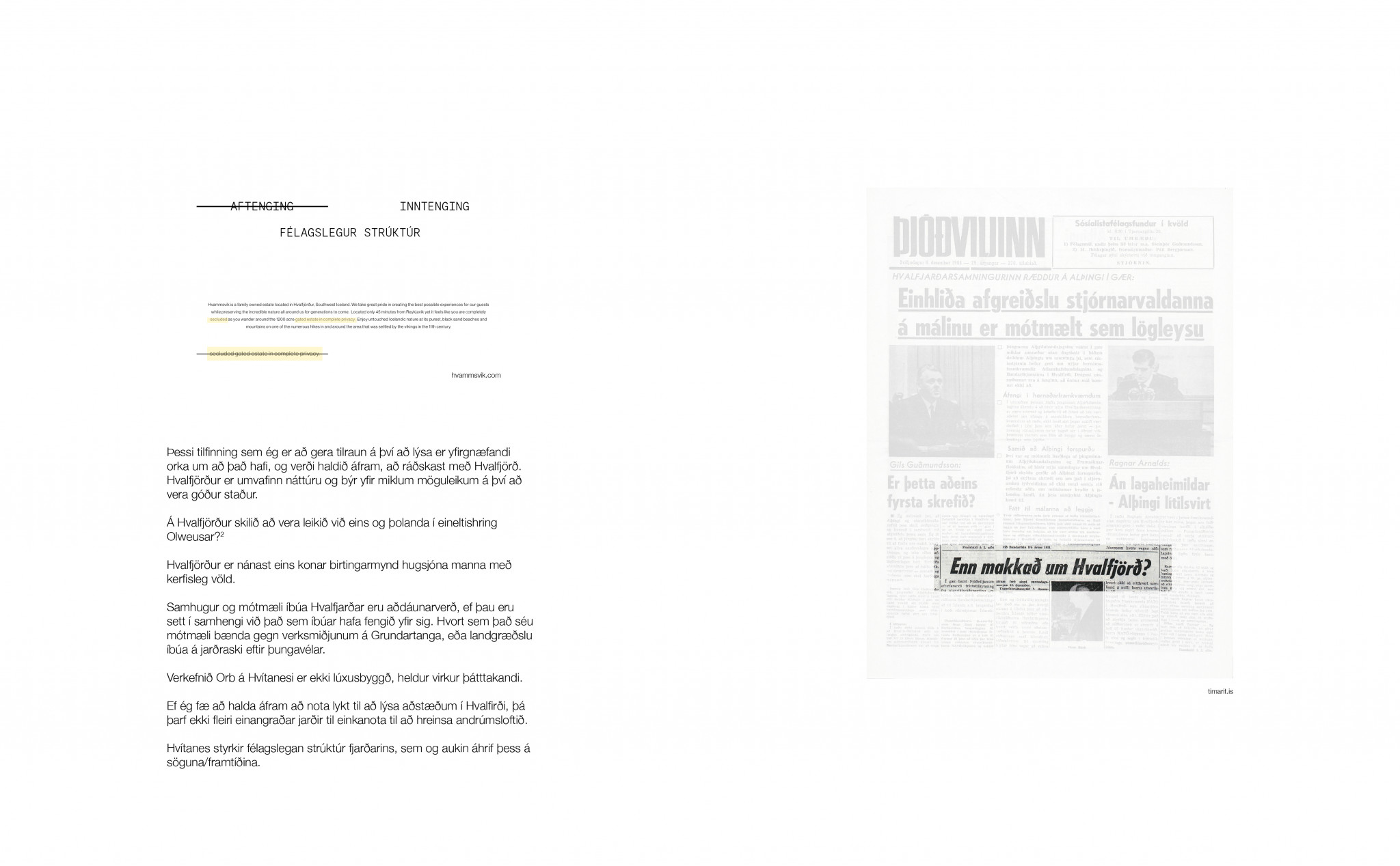 There is a stench in the air. Fumes from smelters and whale intestines have contaminated the air. Despite that, Hvalfjörður maintains an active local community, in the depths of nature.